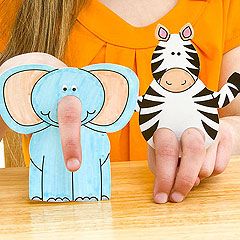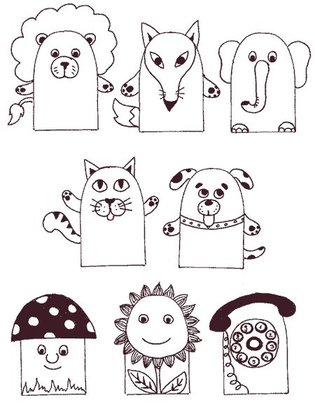 Ha a hátuljára kis papírhengert ragasztunk, a kisgyerek is fel tudja húzni ujjaira, és miközben mi mesélünk, ő mutatja, kiről van szó, vagy az ujjbábbal a mozgást is utánozhatja.